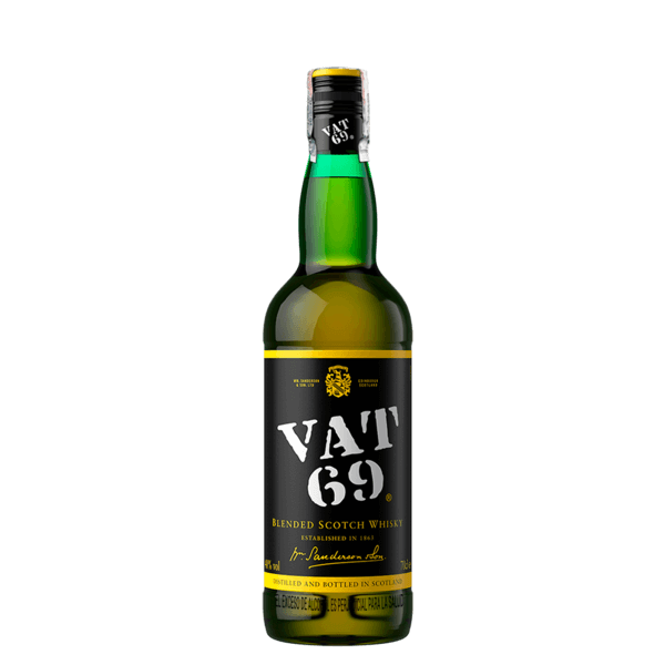 El Whisky Vat 69 es un Blended scotch originario de Escocia, originalmente madurado en barriles que se han usado previamente para almacenar vino. El origen del Whisky Vat 69 se remonta en el año 1839, donde el diseño de la botella se ha mantenido en el tiempo. Para lograr este exquisito whisky, se ha tomado un proceso de selección arduo, donde se han utilizado aproximadamente una variedad de cuarenta tipos de whiskies para obtener el resultado final.